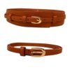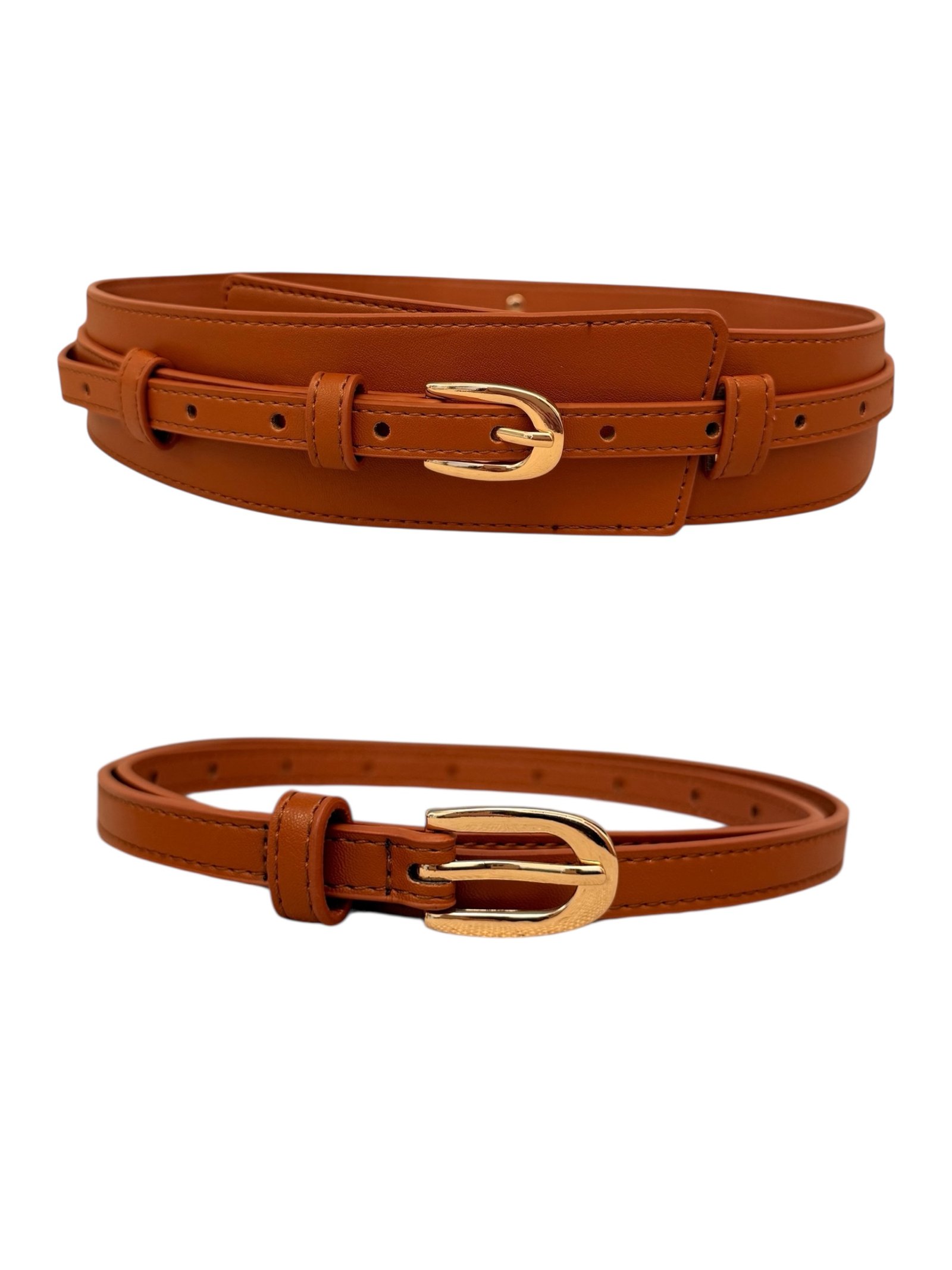 Nosso cinto largo marrom telha traz sofisticação e praticidade em uma peça só. Com fivela dourada de acabamento polido e estrutura firme, ele marca a cintura com elegância e valoriza a silhueta.